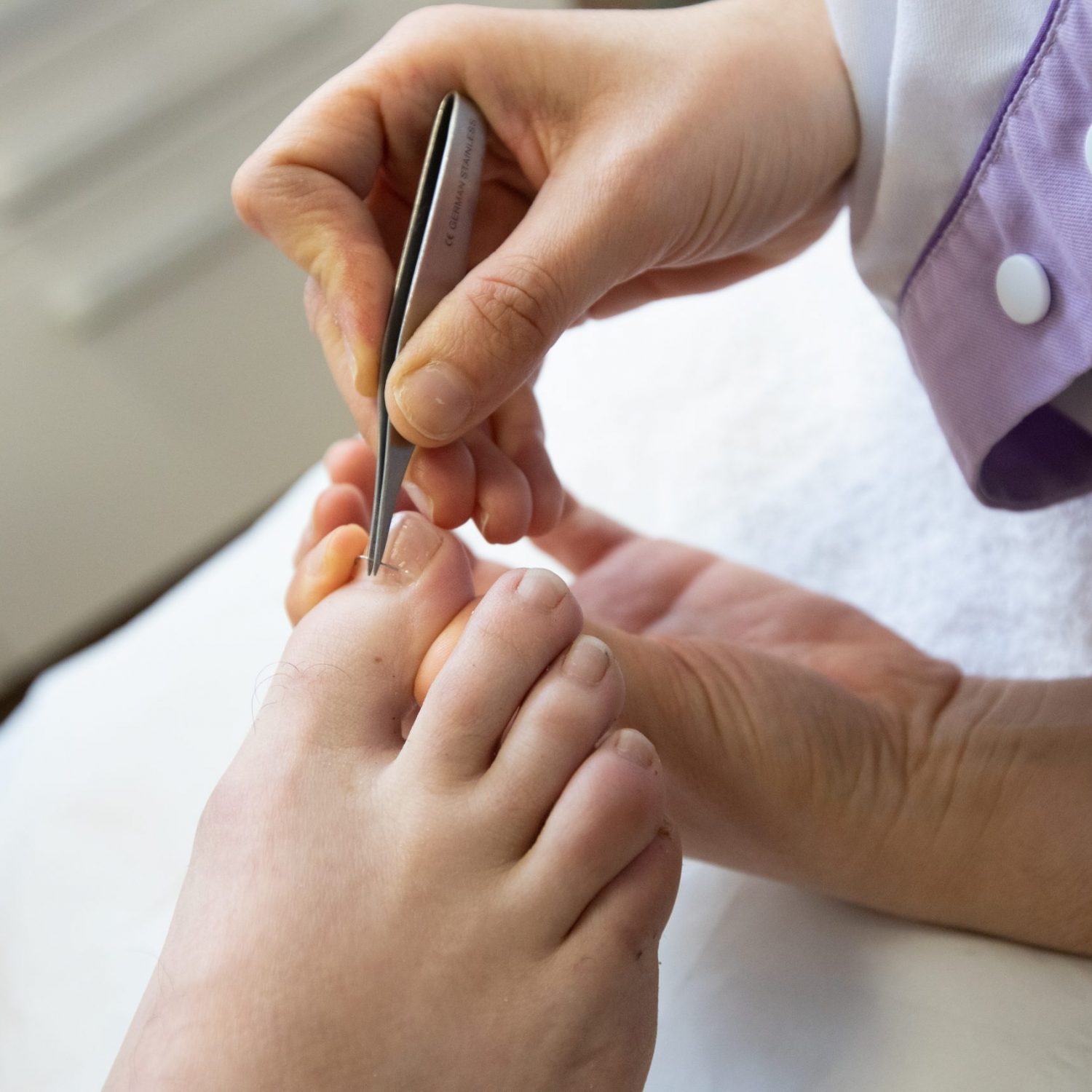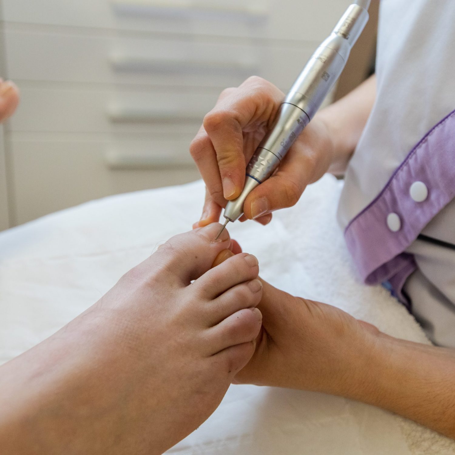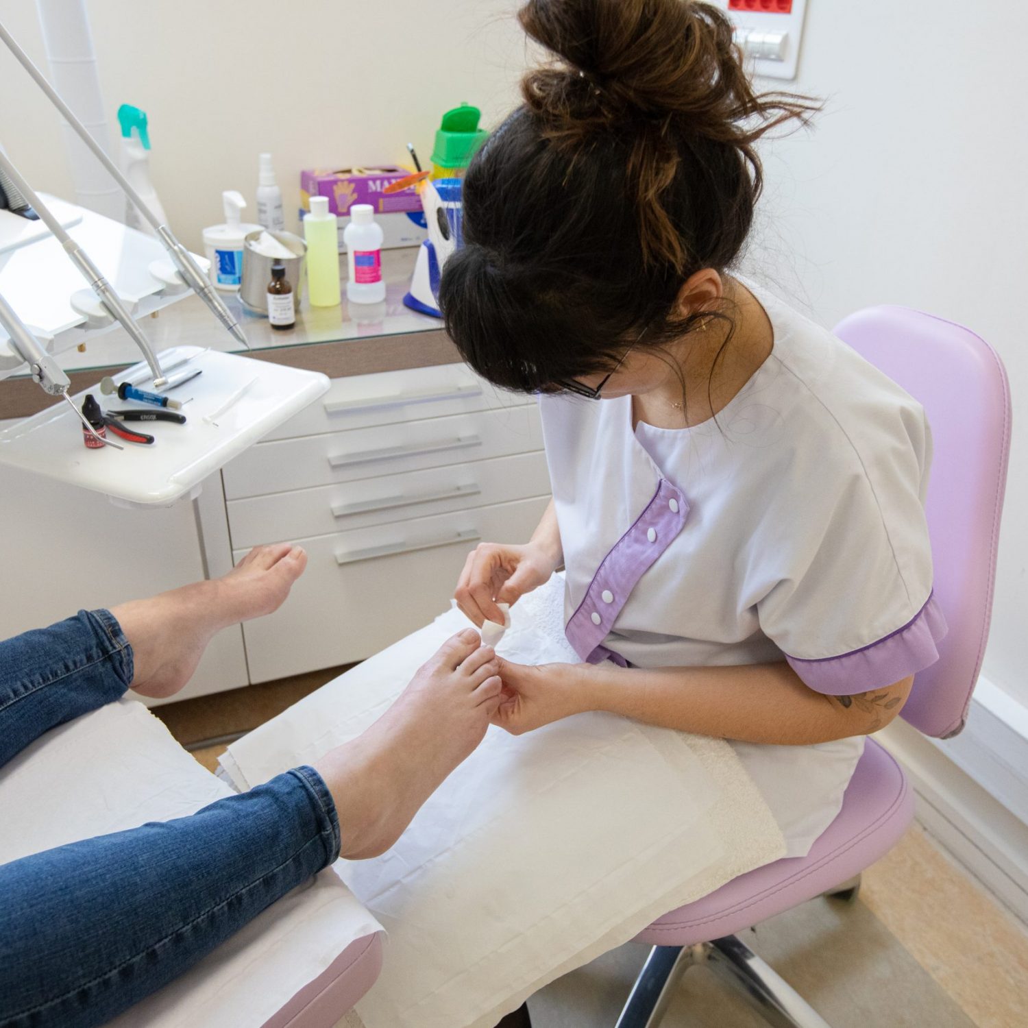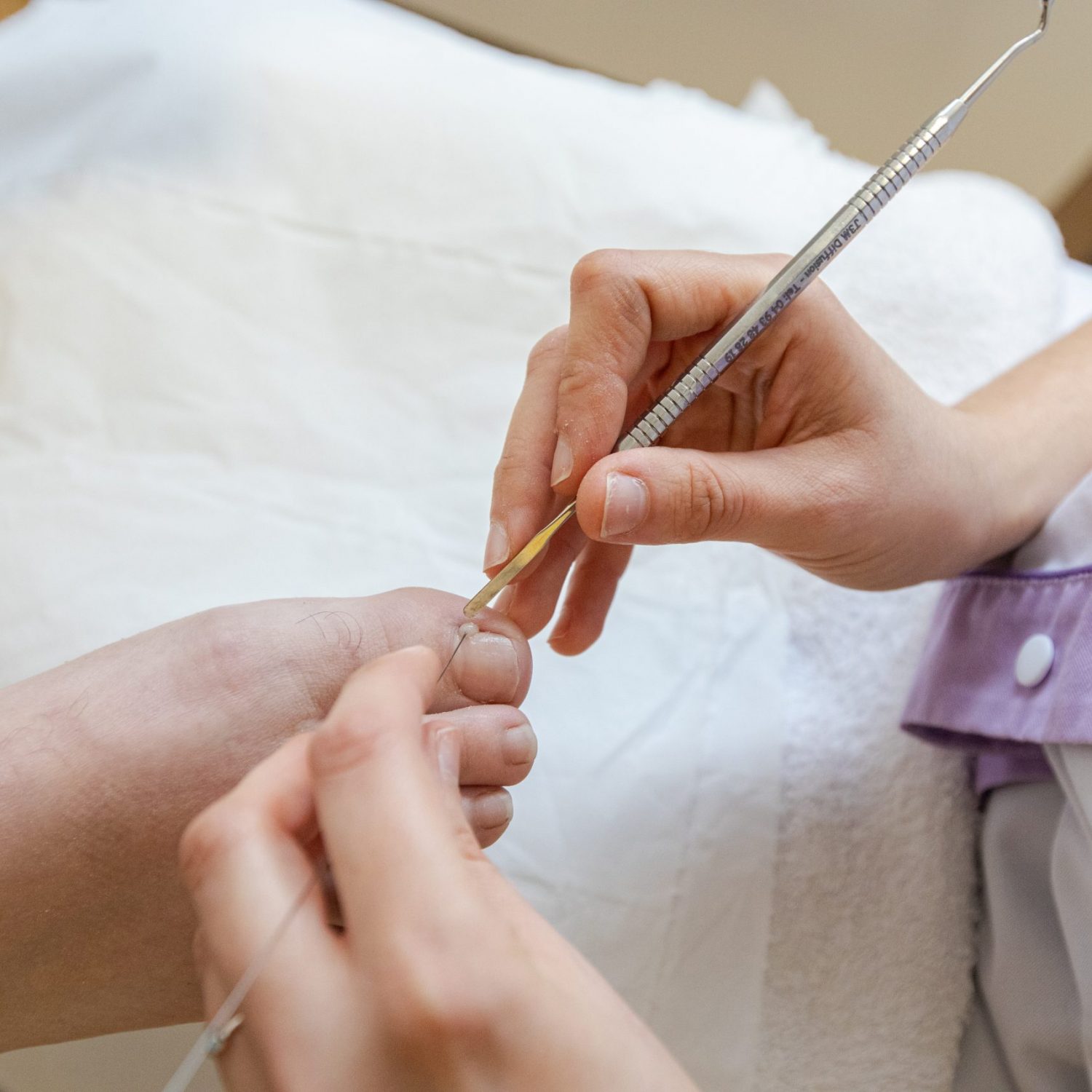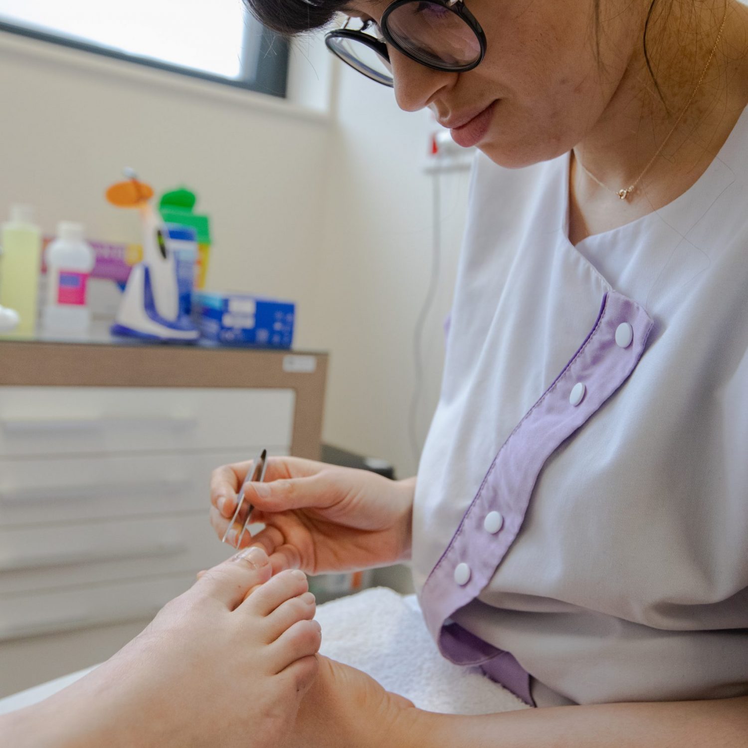 Le pédicure-podologue, à partir d’un diagnostic qu’il aura préalablement établi, définit le protocole de soin à prodiguer au patient.